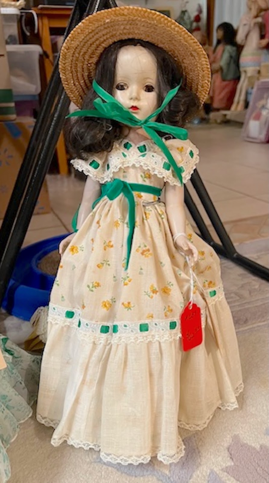 Jenell noted that other doll companies sought to capitalize on the "Gone with the Wind" craze, creating dolls identified as Southern lady or belle, as Madame Alexander had the rights to create dolls based on the characters in the novel. This doll by Nancy Ann Storybook Dolls is called “Southern Belle.”
