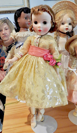 Jan Irsfeld brought this Cissy doll that she had found nude in a doll shop shortly after she moved to Austin. Jan told the club that she fell in love with the doll's face, but has never been able to identify the model. She made the dress, which is a copy of a Cissy dress she saw in a catalog.